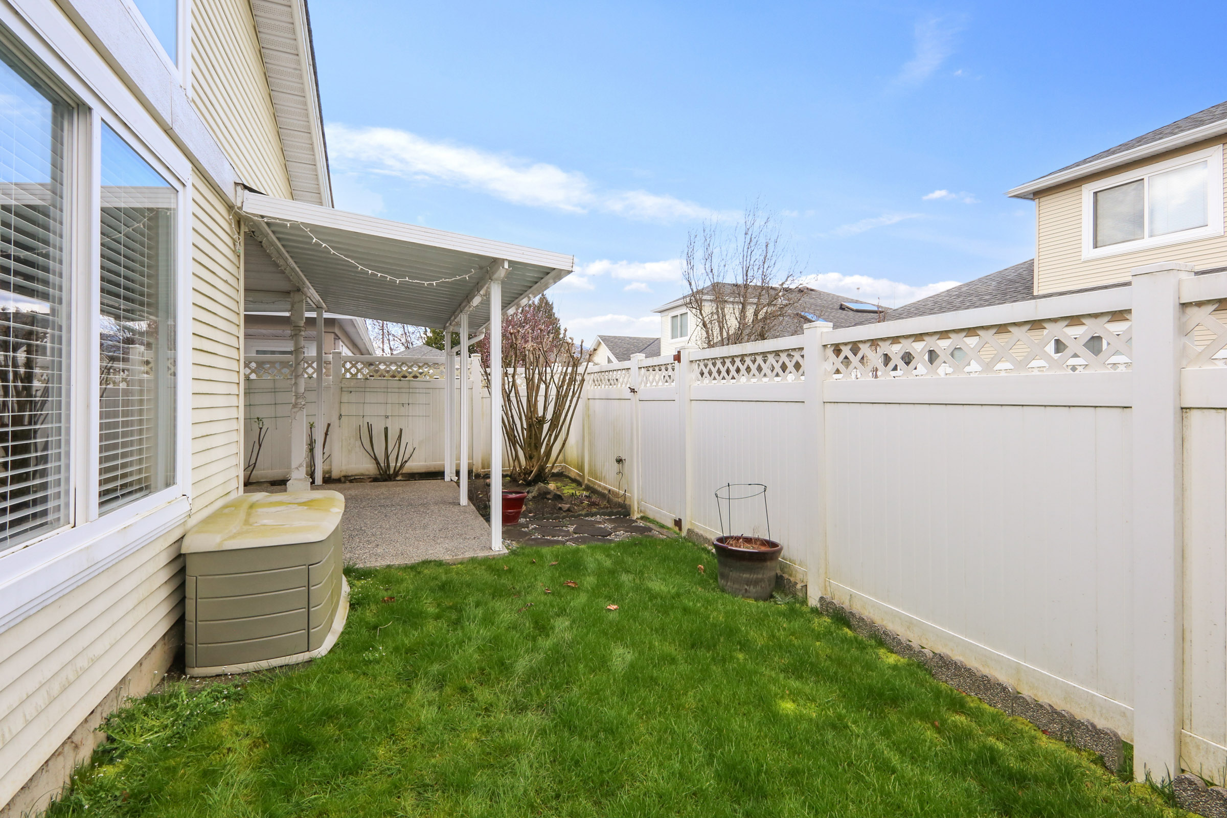 Hazelwood Grove is one of Chilliwacks finest 55+ gated communities. This lovely rancher is 1327 sq ft with vaulted ceiling, skylight and a newer central air conditioner. The formal living room, dining room and family room has a three sided gas fireplace. This beautifully updated rancher offers 2 large bedrooms, 2 baths, master with a 3 piece bath and 2 closets. Kitchen has been updated with newer appliances and has been recently painted. Has double garage, covered patio and fenced yard. Youll love the clubhouse, with a heated indoor pool, sauna, swirl pool, guest suite and more! One dog or cat allowed to 18 RV parking if available and ample visitors parking. Huge a contingency fund and the grounds are beautifully maintained. No presentation of offers until March 30th, 2025 at 5:30pm