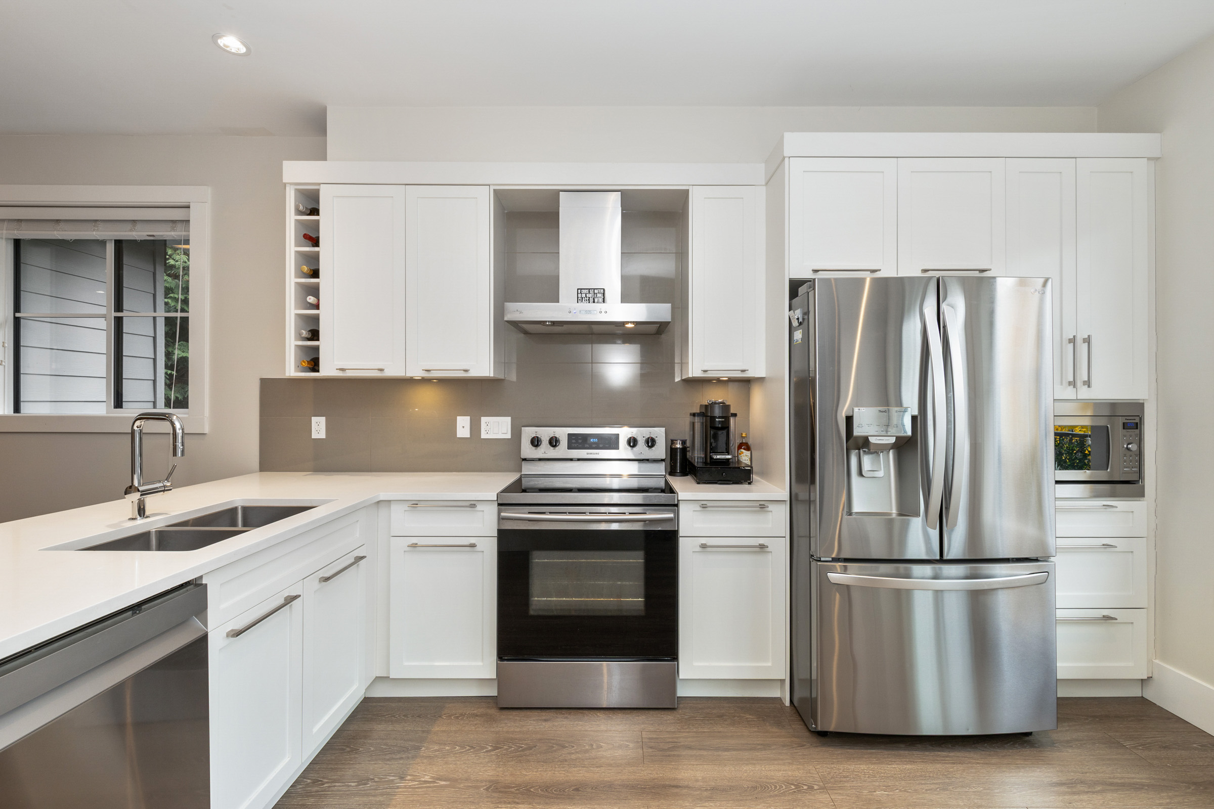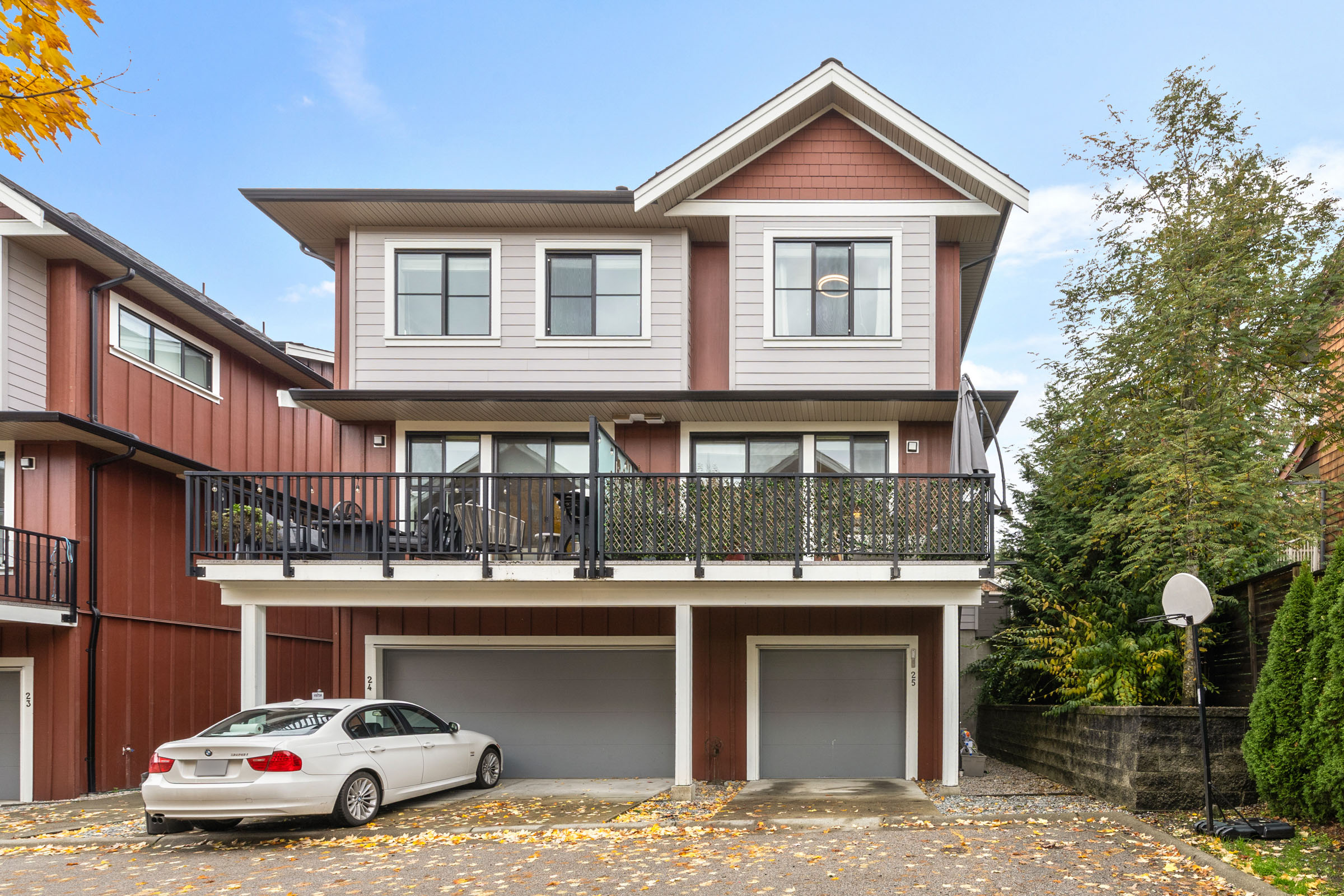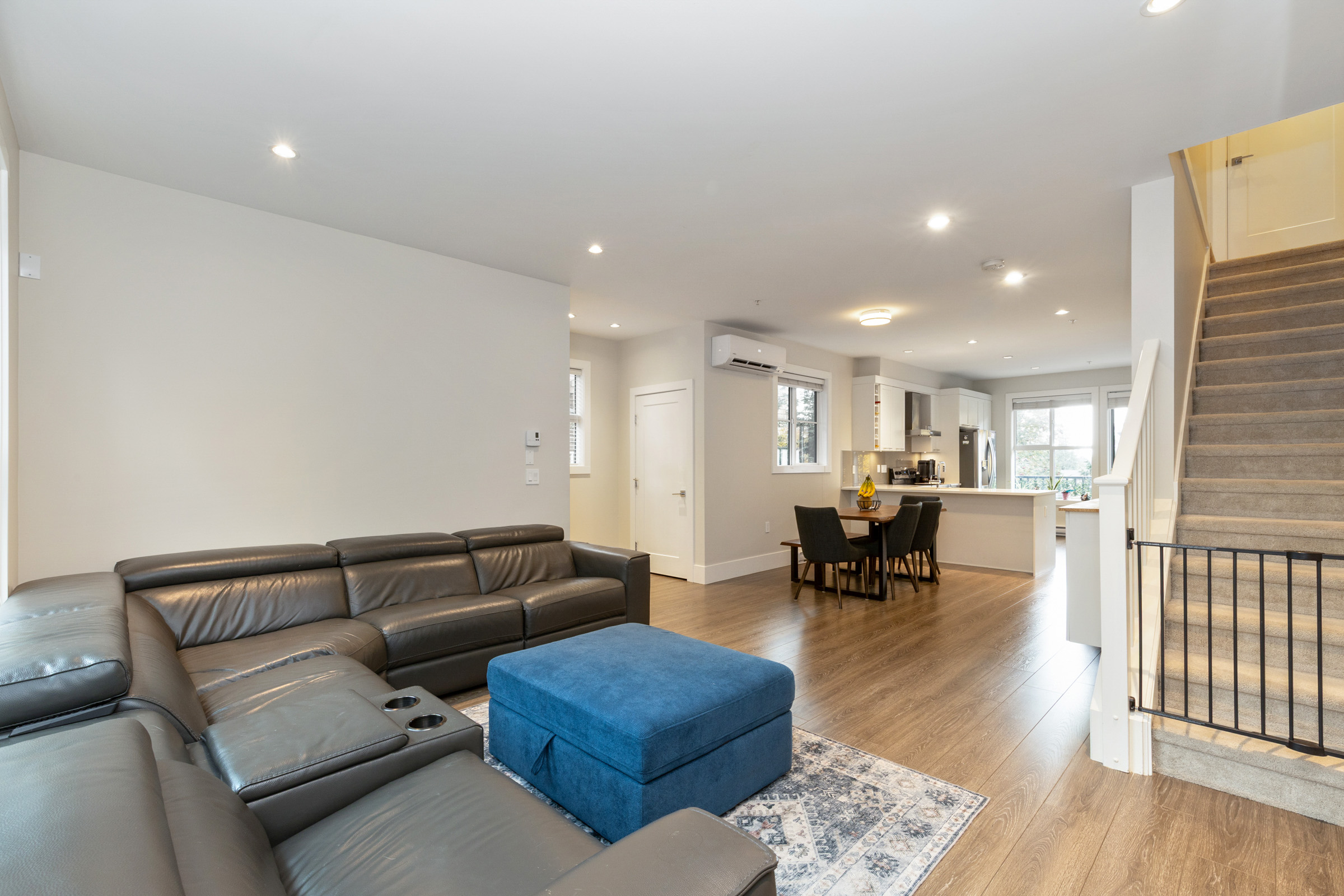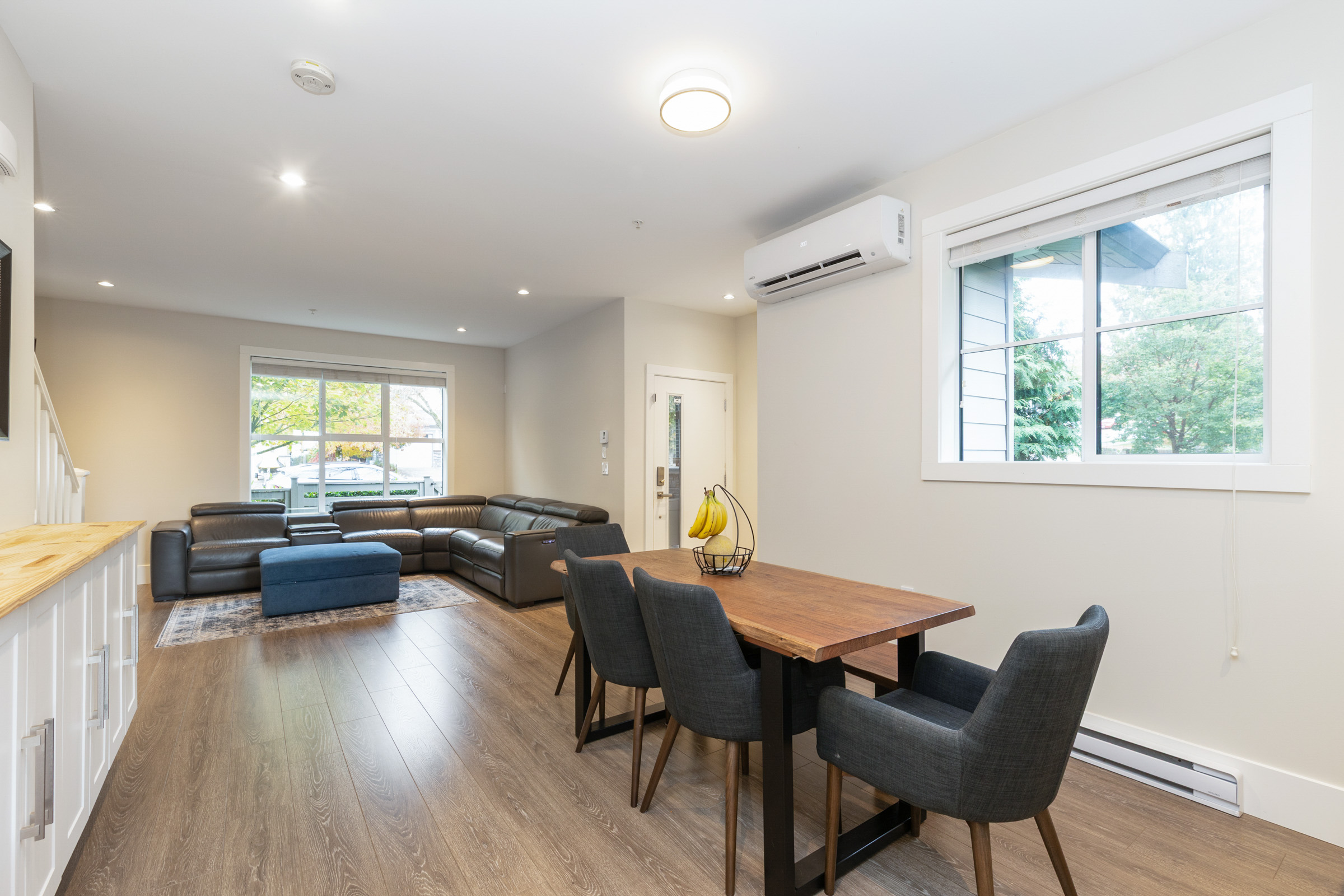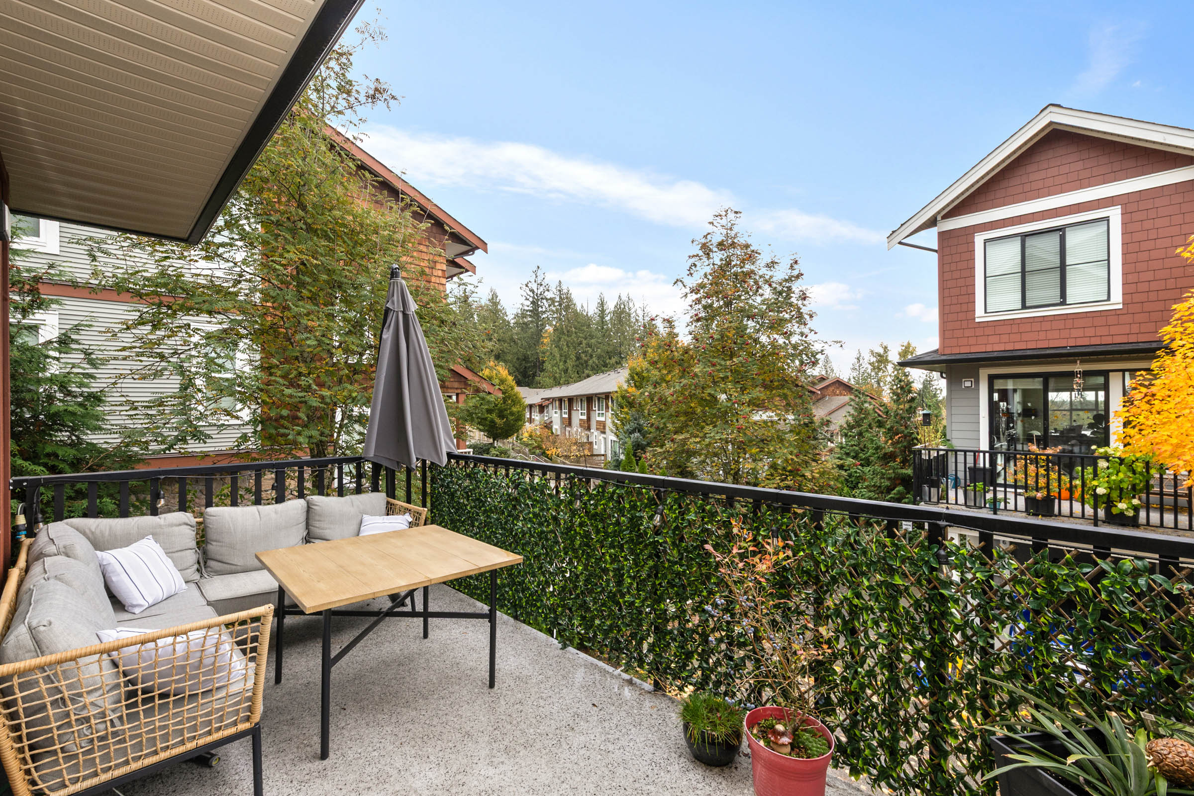 Welcome to Archstone Rockridge. Duplex style, END unit! This beautiful 3 bedroom, 3 bath townhome is in a choice family neighborhood of Silver Valley. MAIN- Bright, open plan with A/C. Lrg livingroom w/elec f/p, convenient dining room, lrg, bright kitchen w/nook area for multi uses. Breaky bar, quartz counters, ss appliances and more! End unit offers extra side windows, natural light. UP- lrg primary b/r w/walk thru closet to the ensuite. The 2nd and 3rd b/rs w/main bathroom & laundry complete upper level. Access front door off the street is nice for guests & groceries. Private location. Steps from hiking trails, Alouette River, Wild Play adventure park, Maple Ridge Park and minutes from Golden Ears Provincial Park. School catchments are Yennadon Elementary and Garibaldi Secondary.